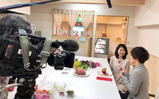ベジデコサラダ 作り方教室の様子やXmasに華やぐ野菜たちを丁寧に放映して下さいました。