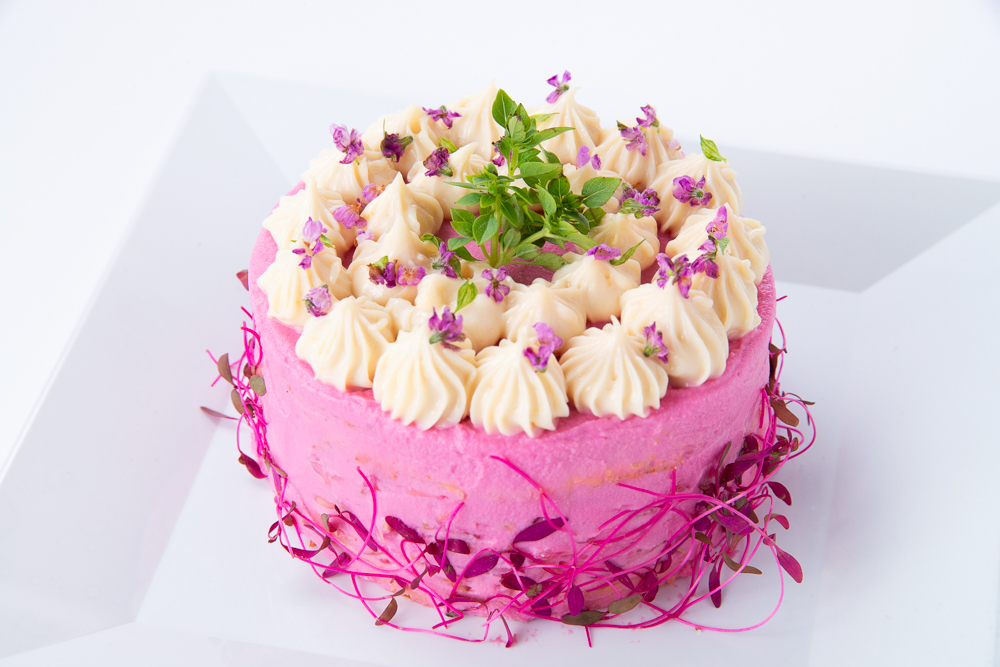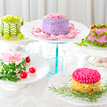 小麦粉、砂糖、卵、乳製品不使用スポンジを使ったベジデコサラダをつくります。